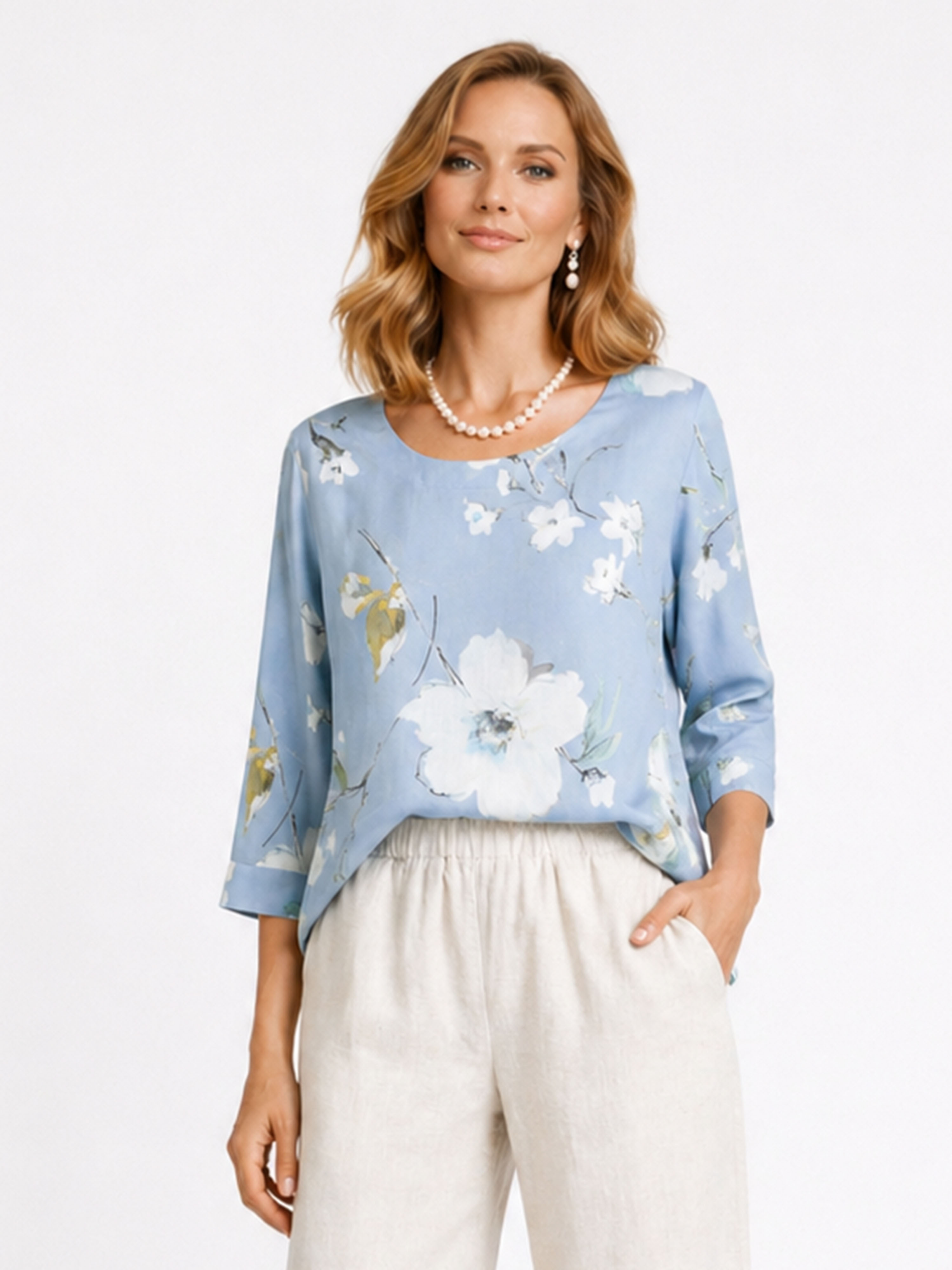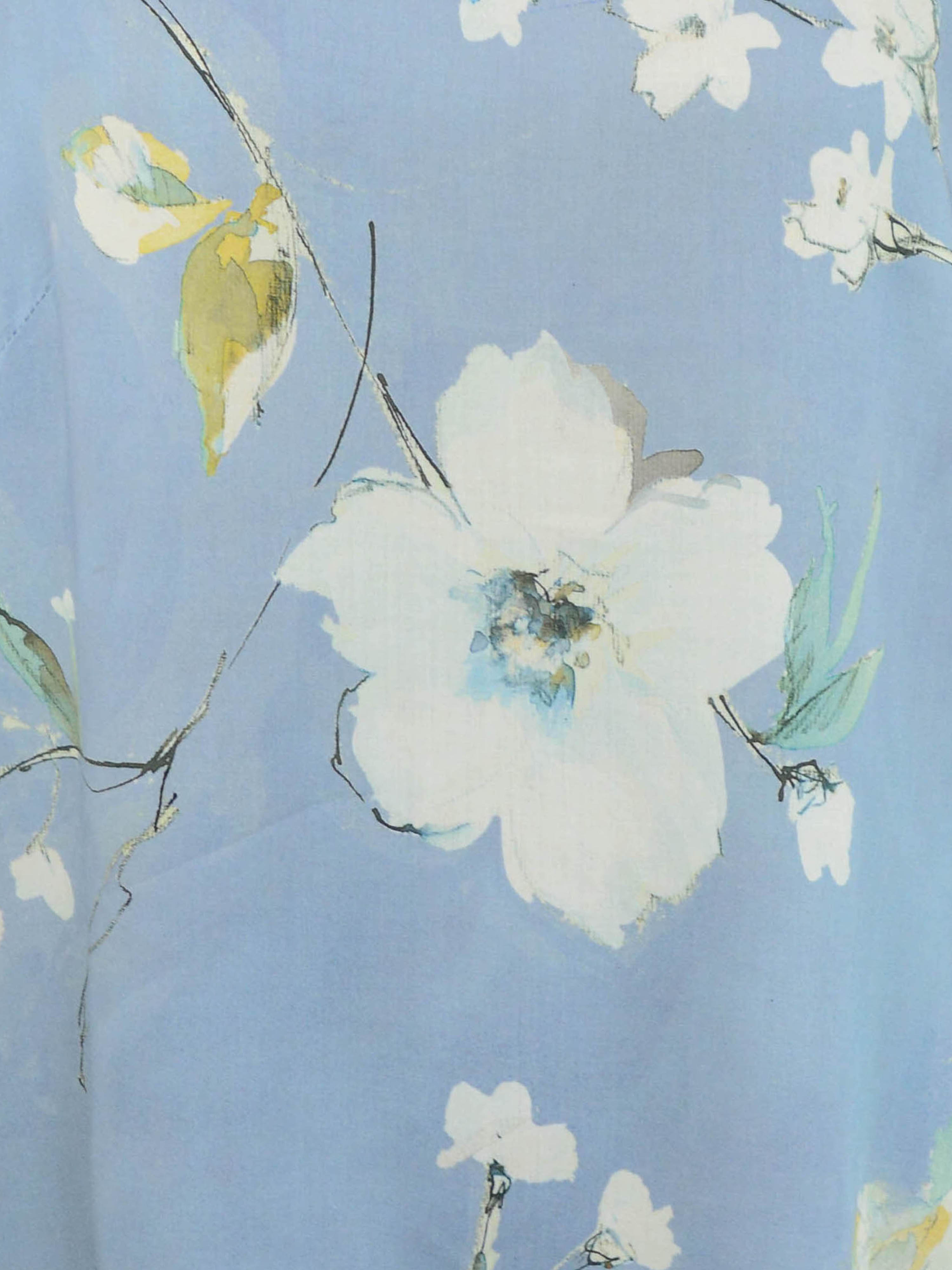 Bluzka z tkaniny satynowanej w kwiaty, niebieska 2896