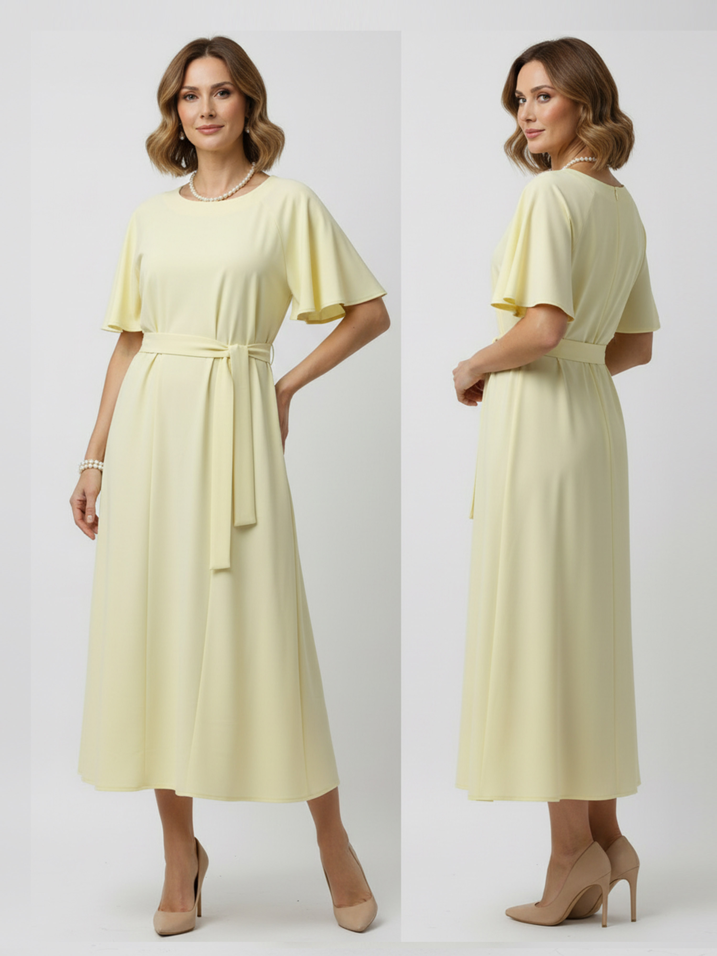 Długość midi sprawia, że sukienka jest niezwykle uniwersalna – doskonała zarówno do pracy, na spotkania, jak i na rodzinne uroczystości. Jasny kolor wprowadza świeżość do stylizacji i świetnie komponuje się z różnymi dodatkami.