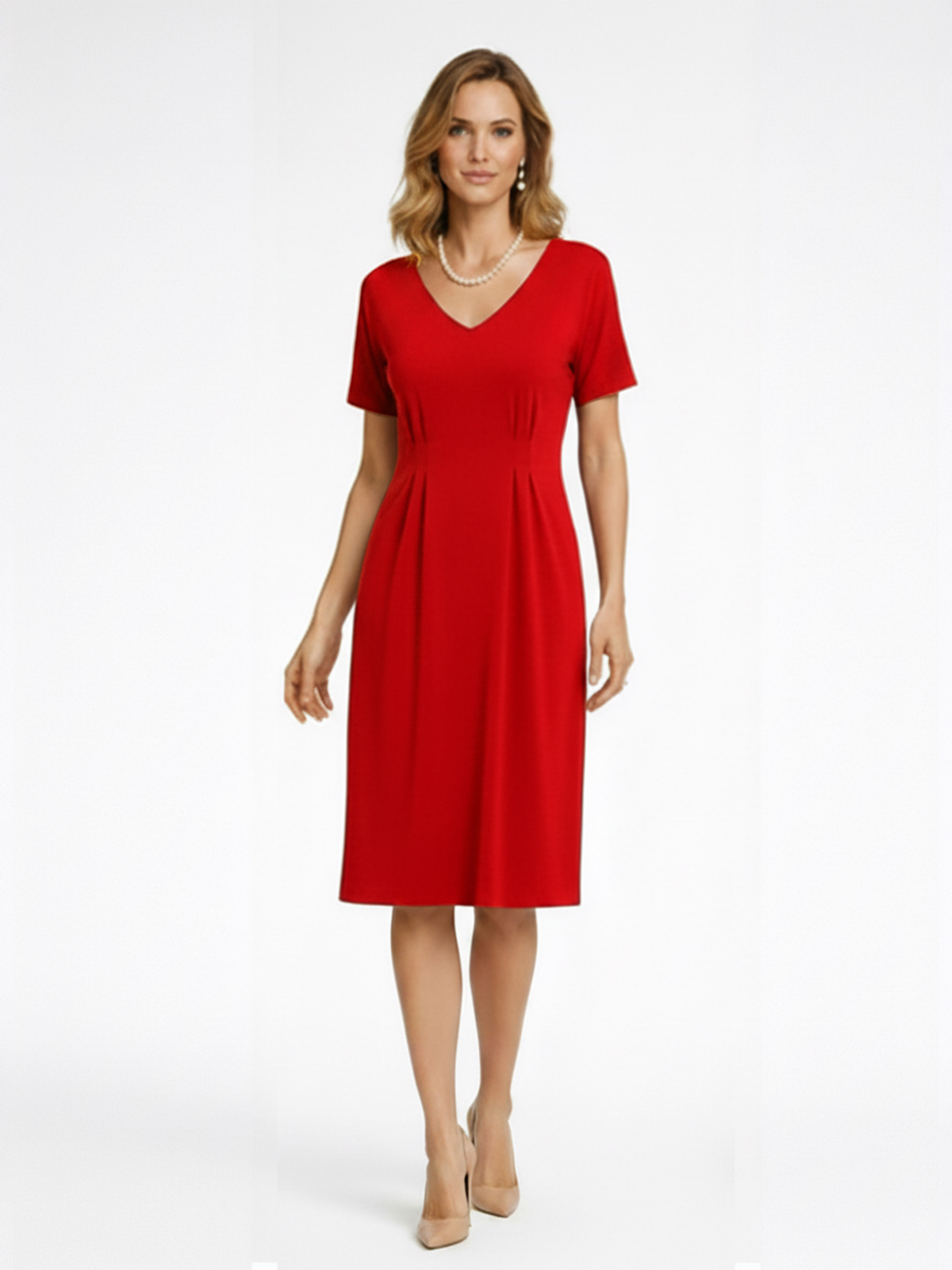 Sukienka z zaszewkami w talii z miękkiej dzianiny czerwona 110